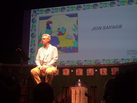El feminisme militant de Gabriel i l’elegància de Bolick contrasta amb el discurs iconoclasta de Calderón i Lijtmaer, tan punk que no grinyola gens al costat de la xerrada que farà després el crític musical Jon Savage, una eminència del punk britànic i autor d’England’s Dreaming. The Sex Pistols and Punk Rock, llibre del que jo, que vaig viure una època d’interès pel punk, no tenia ni idea. La immensa majoria de gent congregada al CCCB, per sort, sí que sabien què anaven a veure, perquè Savage era l’autèntic reclam de la sessió. Una autèntica eminència, amb posat de gentleman i modals exquisits, que parla dels Sex Pistols i del punk amb el mateix to que la reina Isabel II deu comentar les carreres d’Ascot.