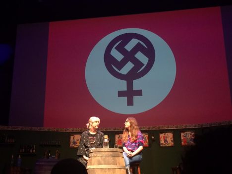Però sí, el públic masculí també aplaudeix la performance del combo Calderon + Lijtmaer, que sota una esvàstica inserida en el símbol de la dona comencen a desmuntar tots els tòpics suposadament “feminazis” que han –hem- d’aguantar les dones que creiem, reivindiquem i lluitem per la igualtat d’oportunitats. I aquí es va parlar de ser soltera, de no tenir fills, del porno feminista, de l’amor romàntic, de les pel·lícules plenes de testosterona i homes fracassats i d’Amélie –i la seva “màgia” de pertorbada femenina- com un mal que ens ha portat el cinema.