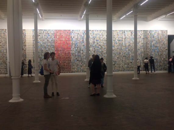 Però el que és realment fascinant és deixar-se emportar per la força d’aquesta acumulació d’imatges, on el contingut de cada postal deixa de tenir significat propi en favor d’una suma de formes i colors que defineixen una peça nova i única, una gran obra visual i abstracta que es desplega per les parets de la fundació i que ens interpel·la sobre la nostra relació amb les imatges que ens envolten.