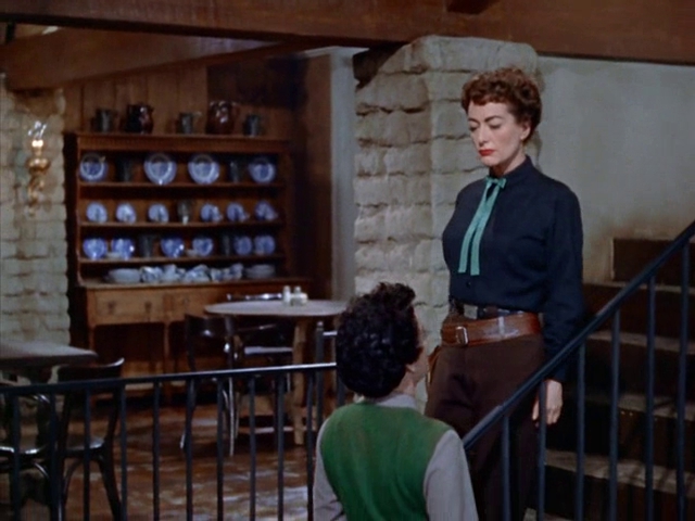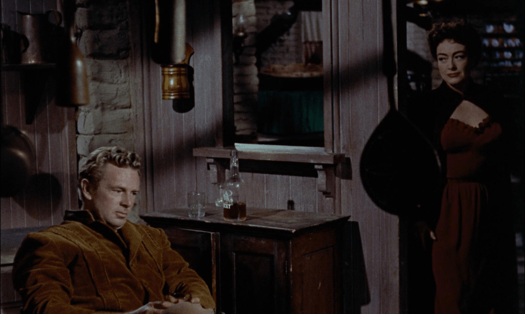 Una de les escenes que més em fascina de Johnny Guitar (Nicholas Ray, 1954) és una que està molt al principi de la pel·lícula, on el crupier Sam se’ns dirigeix als espectadors -fins i tot mirant a càmera- per explicar-nos que Vienna (Joan Crawford) és un personatge femení amb atributs tradicionalment masculins. Cosa que queda reforçada , tant en la seva actitud com en la seva posada en escena, ja que, amb pistola o sense, sempre adopta una posició permanent de poder en la imatge.