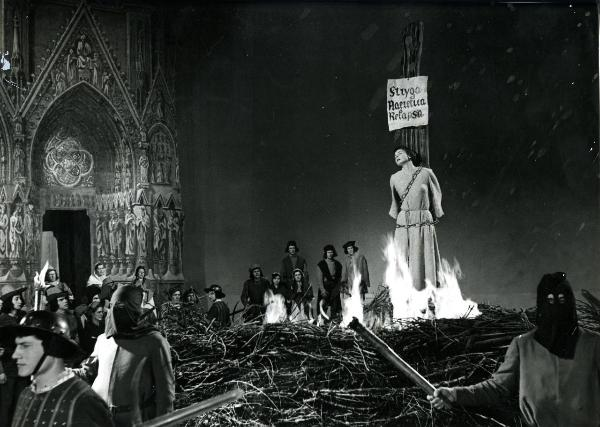 Ingrid Bergman tornaria al paper de Joana d’Arc al cap d’uns anys, com a protagonista d’un muntatge experimental dirigit pel que llavors s’havia convertit en el seu marit, el director italià Roberto Rossellini. Filmada en directe el desembre de 1953 al Teatre San Carlo de Nàpols, Giovanna d’Arco al rogo és un oratori escènic basat en un text de Paul Claudel i amb la música d’Arthur Honegger, que se centra just en el moment de l’execució de Joana d’Arc.